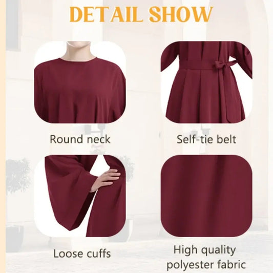 Fashion Muslim Islam Abaya Women Muslim Dress Dubai 2024Turkey Casual Robe With Detachable Belt Long Flare Sleeve Black Abaya