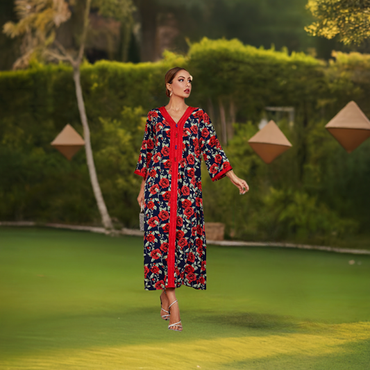 Regular price $29.01 USDRegular priceUnit price / per$49.01 USDSale price $29.01 USDEid Muslim Women's Floral Print Dress Short Length Eye Catching Design for Ramadan Dubai Abayas Islam Party Vestidos Saudi Arabic Long Robe Morocco Kaftan