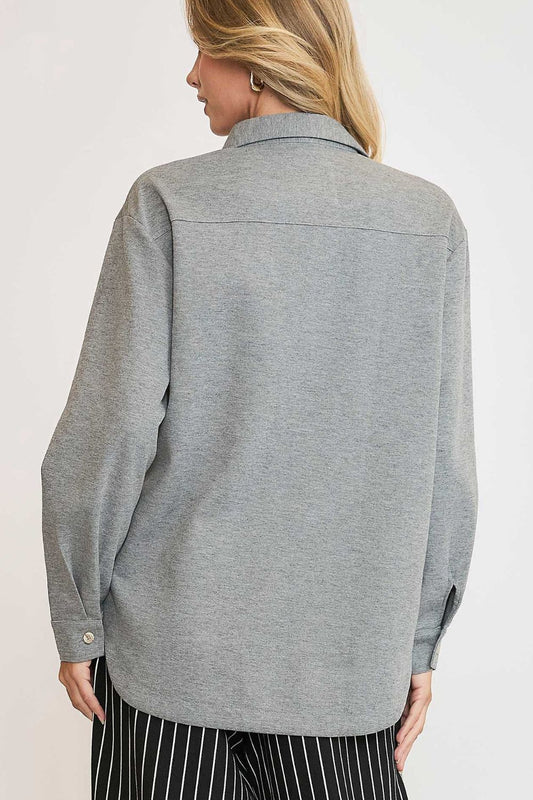 Umgee Full Size Button Down Collared Neck Shacket Plus Size