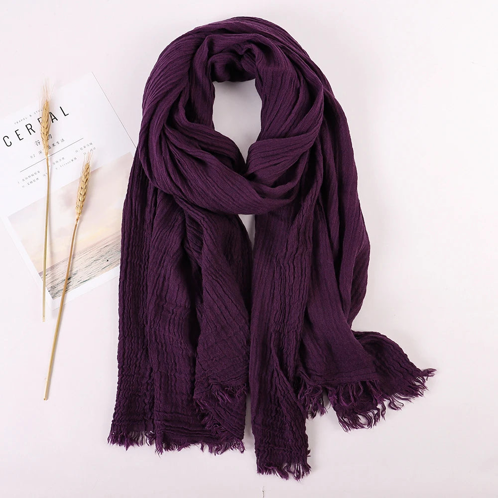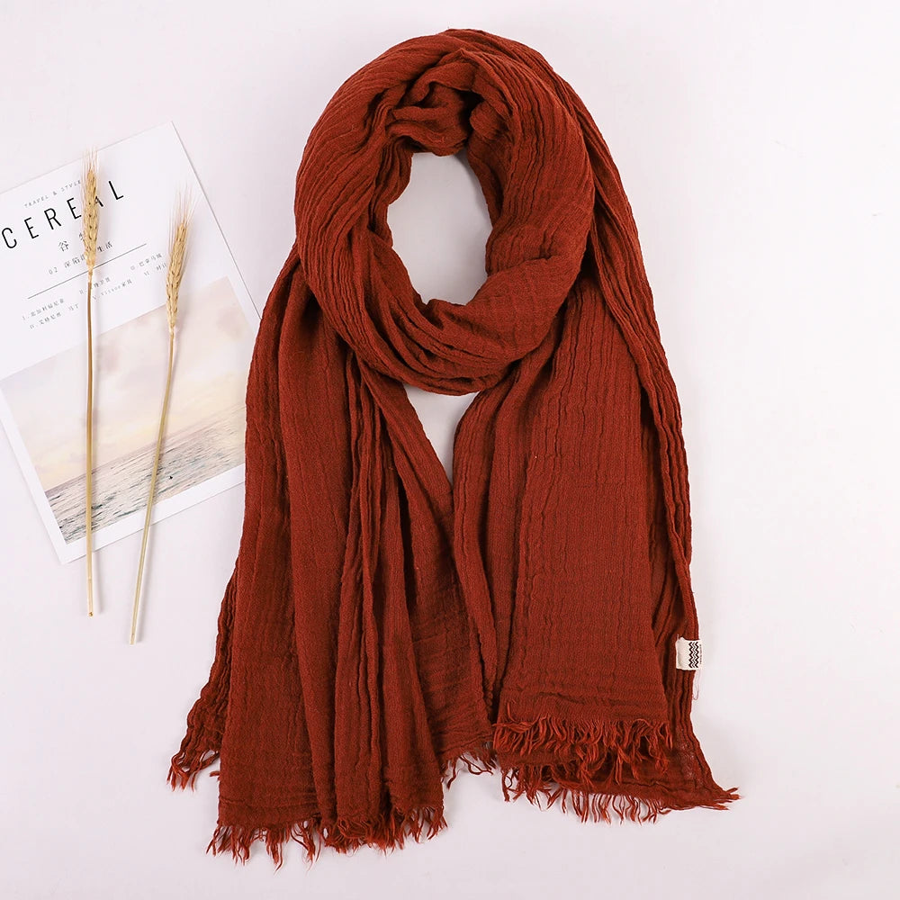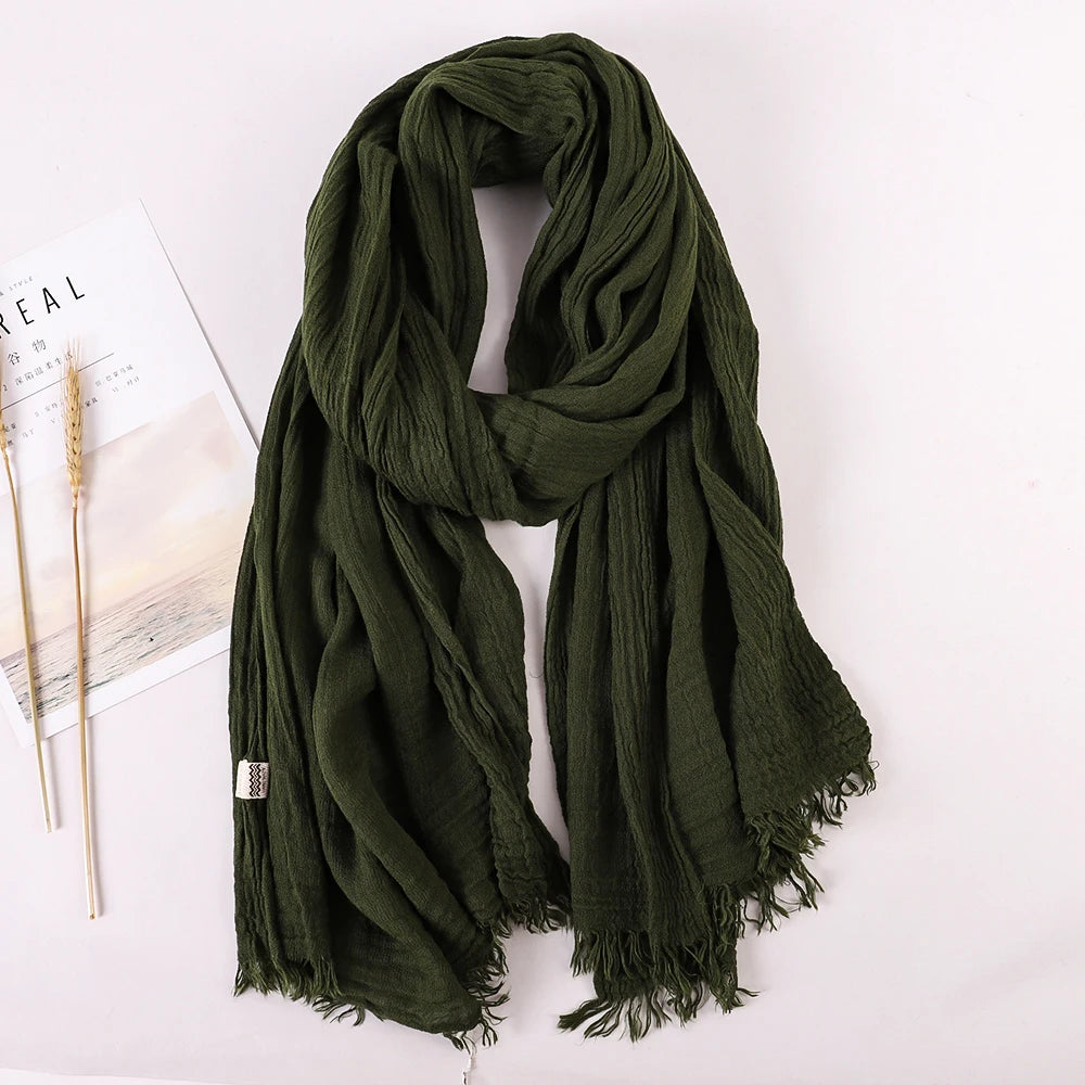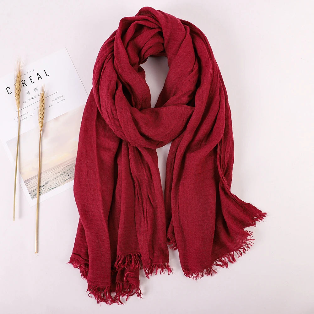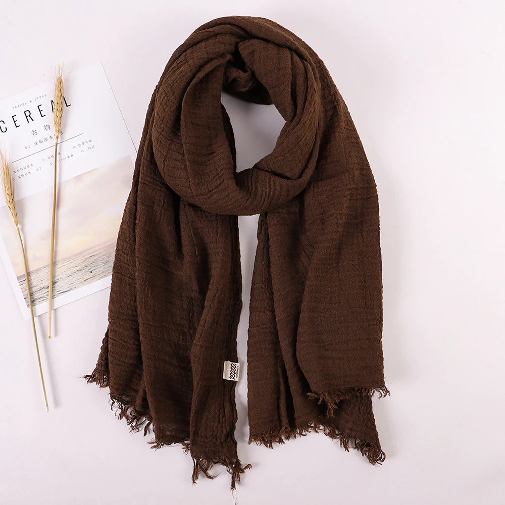 New Design Autumn Winter Women Warm Scarf Simple Solid Plain Linen Cotton Muslim Shawls Kerchief Wrap Head Hair Pashmina Stoles