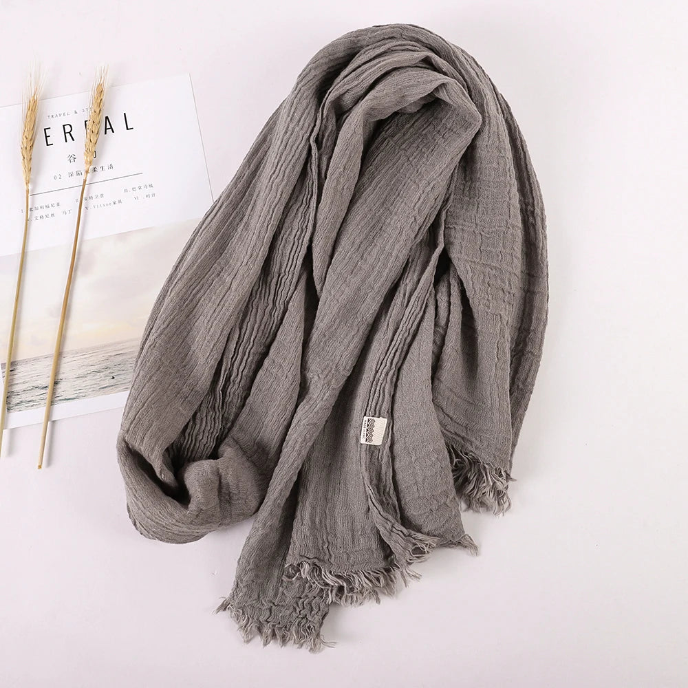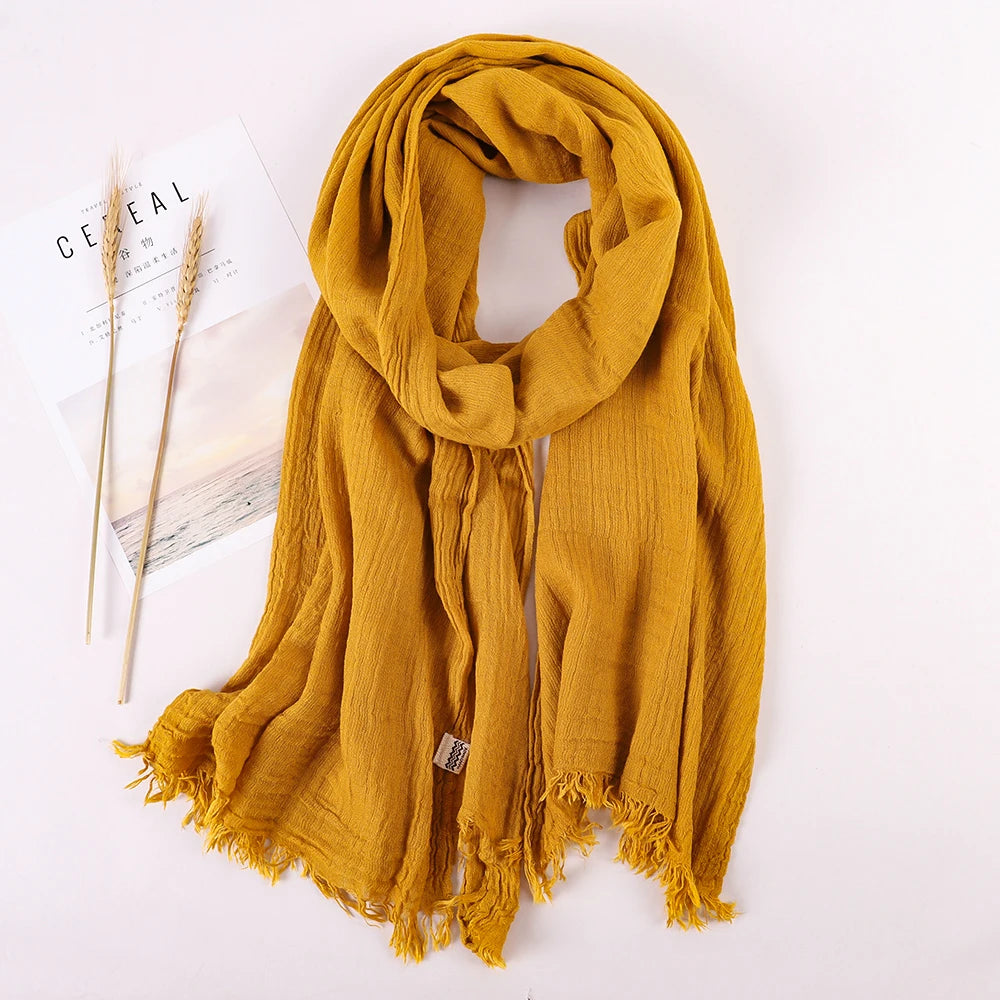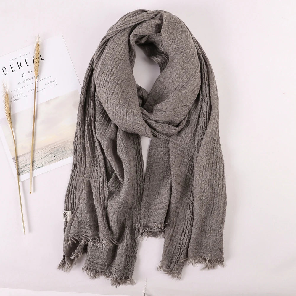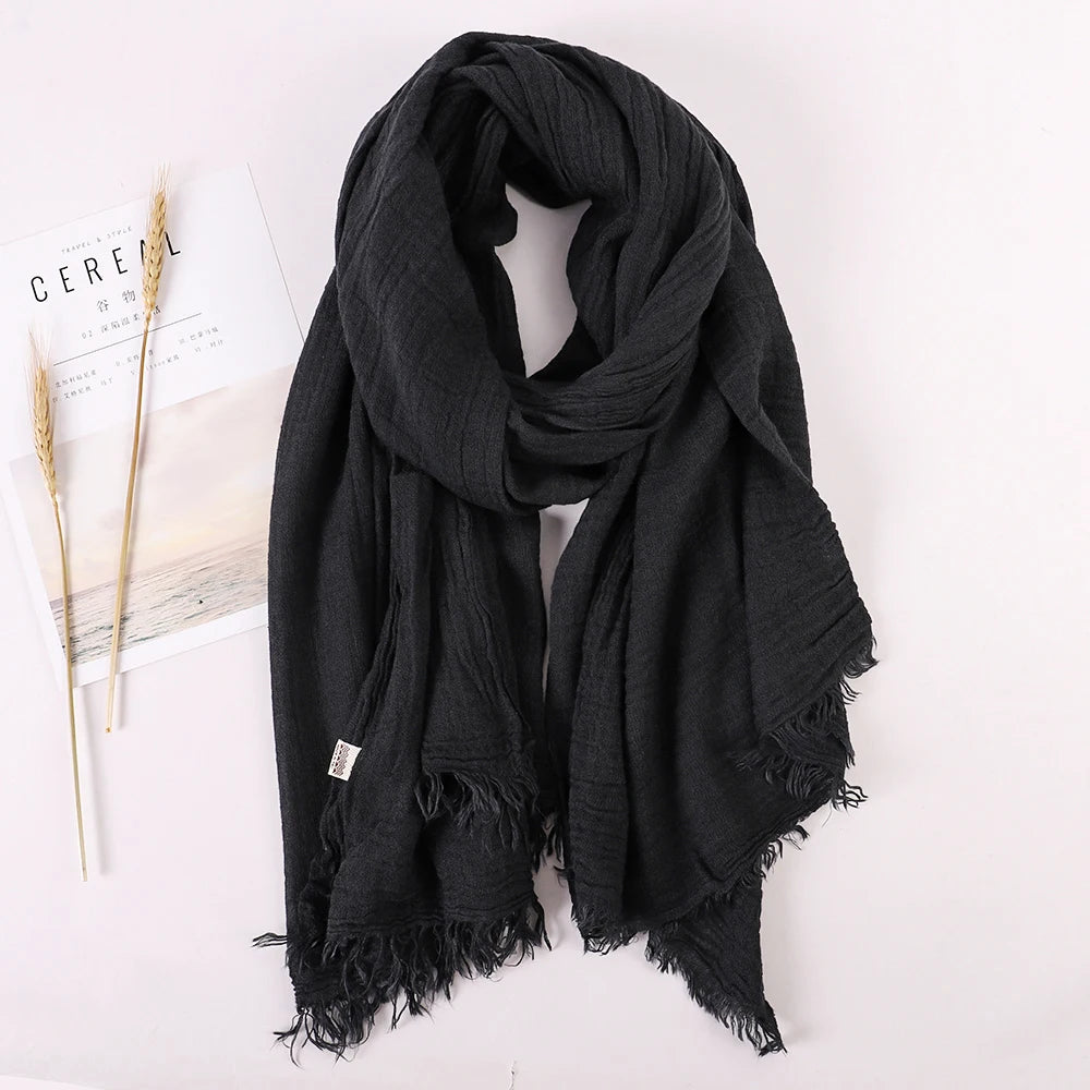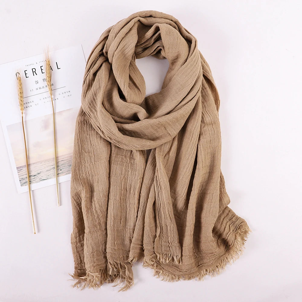New Design Autumn Winter Women Warm Scarf Simple Solid Plain Linen Cotton Muslim Shawls Kerchief Wrap Head Hair Pashmina Stoles