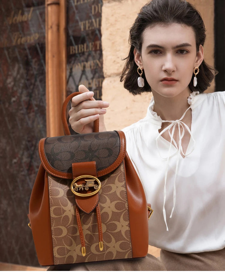 Women's handbag 2025 new fashionable contrasting color backpack high-end feeling carriage large capacity backpack for women